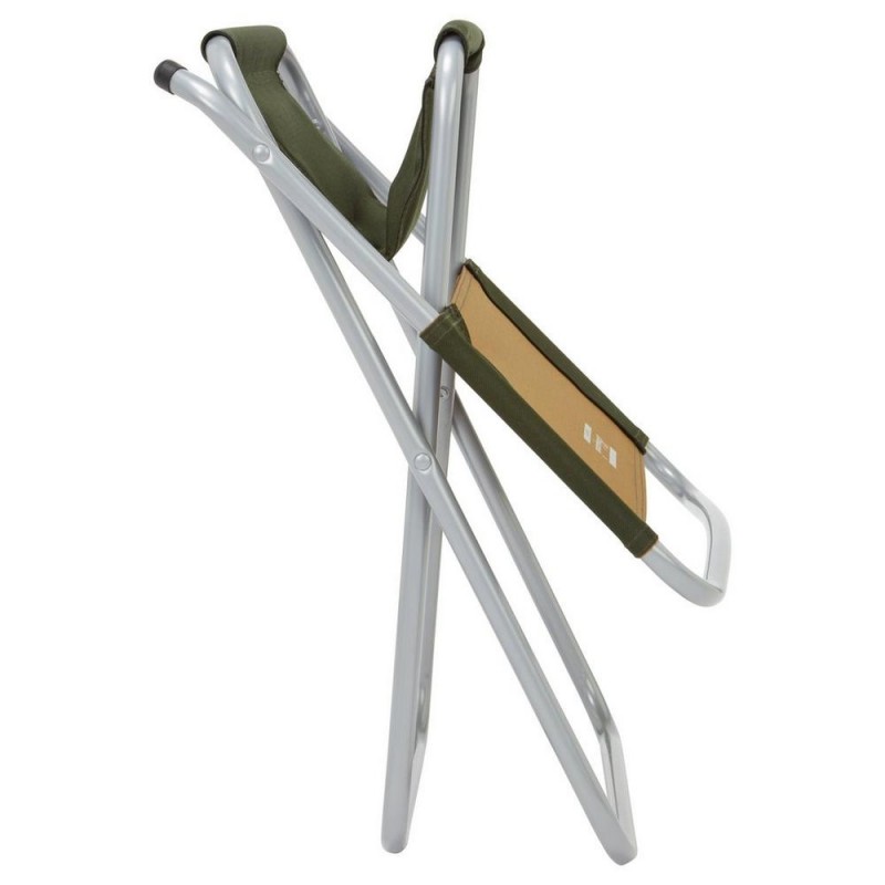 - Una pratica sedia da pesca con robusto sedile in tela e schienale pieghevole